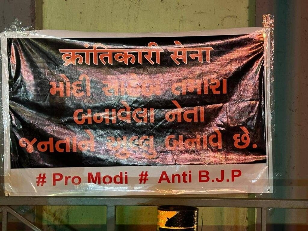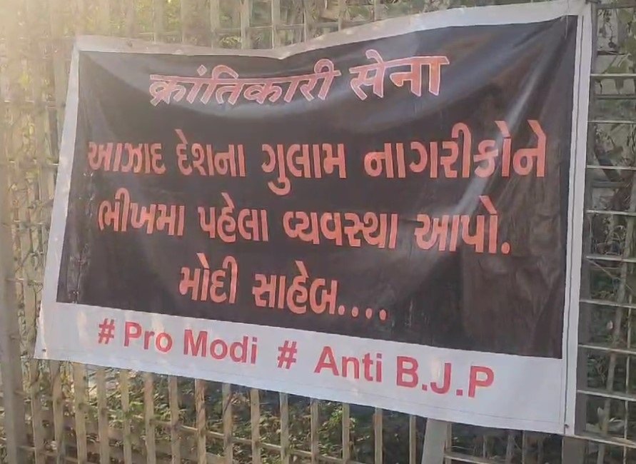 જણાવી દઈએ કે, શહેરની કલેક્ટર ઓફિસ સામે અને વાસણા રોડ પર બેનરો લગાડવામાં આવ્યાં છે. ક્રાંતિકારી સેના દ્વારા લગાવવામાં આવેલા એક બેનરમાં લખેલું છે કે, ‘મોદી સાહેબ તમારા બનાવેલા નેતા લોકોને ઉલ્લુ બનાવે છે’, ‘જનતા વોટ આપે, જનતા વિરોધ કરે, તો નેતાઓ શું કરશે?’ લખાણ સાથેનાં બેનરો લગાડવામાં આવતા તંત્રમાં દોડધામ મચી હોવાનું કહેવામાં આવી રહ્યું છે.