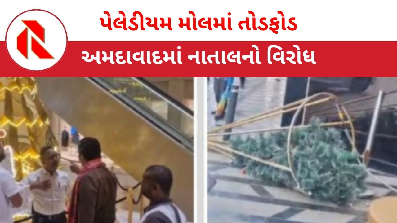 Christmas protest: સમગ્ર દેશમાં આ વખતે ક્રિસમસ અને 31ની ઉજવણી ઉપર અરાજકતાનો માહોલ જોવા મળી રહ્યો છે અને હિન્દૂ સંગઠનો આ વખતે તમામ જગ્યાએ ક્રિસમસની ઉજવણીનો વિરોધ કરી રહયાના બનાવો સામે આવી રહયા છે,અનેક જગ્યાએ તોડફોડના અહેવાલો છે,દુકાનો અને મોલમાં ક્રિસમસ ટ્રી તેમજ શાંતાક્લોઝ કે ટોપી રાખવા કે વેચવા પર પણ વિરોધ જોવા મળી રહ્યો છે ત્યારે અમદાવાદના થલતેજ સ્થિત પેલેડિયમ મોલમાં પણ આજે શનિવારે ક્રિસમસ અને 31 ડિસેમ્બરની ઉજવણીના ભાગરૂપે કરાયેલા ડેકોરેશનનો વિરોધ થયો હતો અને ક્રિસમસ ટ્રી તોડી નખાયું હતું.